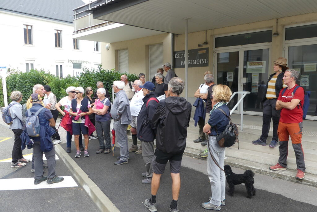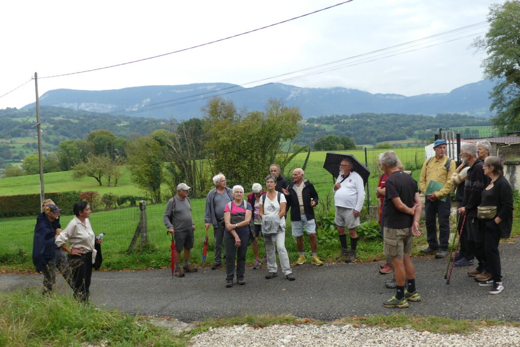 Nous étions plus de vingt-cinq personnes regroupées devant l’Espace patrimoine pour partir à la découverte de l’architecture rurale (pisé) et de la gestion de l’eau dans l’Albanais (rivière, lavoir, moulin, bassin régulateur de crue).