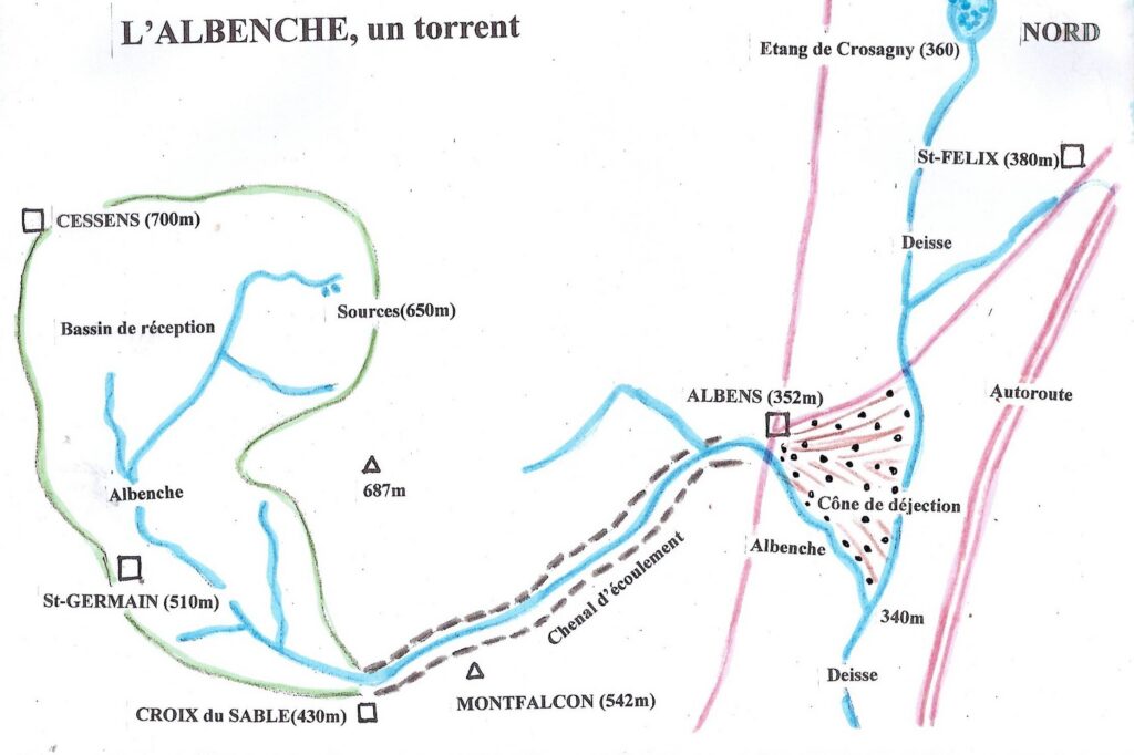 À l’aide d’un croquis sont abordés l’origine ancienne du nom de la rivière, le tracé rapide de son cours, les crues de ce torrent, les aménagements réalisés pour s’en protéger.