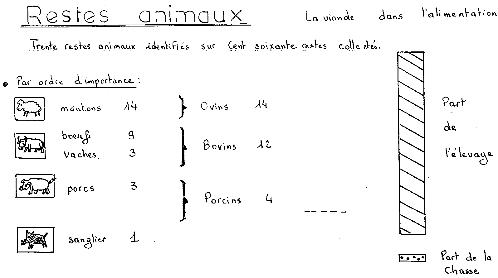 L’élevage est attesté par les résultats des fouilles entreprises sous ma direction entre 1978 et 1981. Elles ont livré un grand nombre de restes osseux : bovins, moutons, chèvres, porcs mais aussi sangliers.